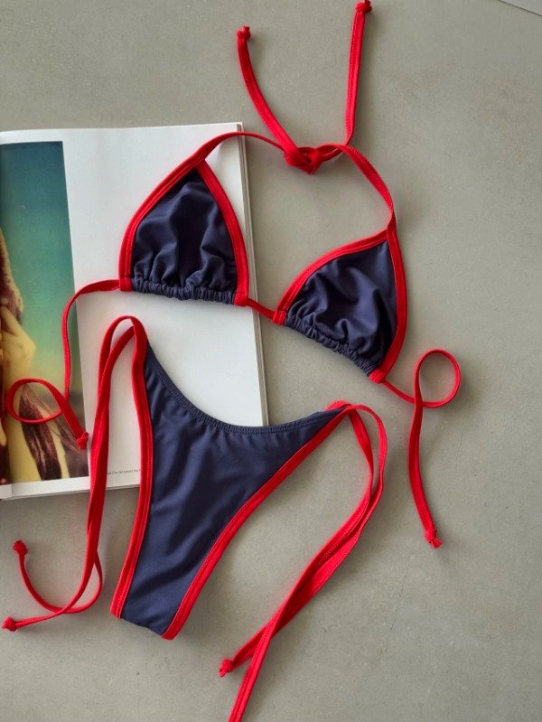 Bikini triángulo forrada, con vivo contratono, breteles para atar a medida en cuello y espalda 😍 Con vivos contratono!
