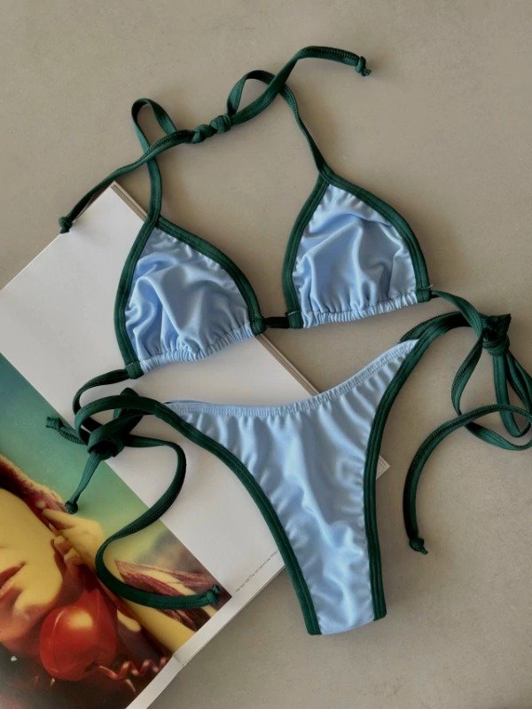 Bikini triángulo forrada, con vivo contratono, breteles para atar a medida en cuello y espalda 😍 Con vivos contratono!