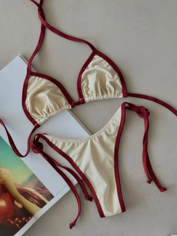 Bikini triángulo forrada, con vivo contratono, breteles para atar a medida en cuello y espalda 😍 Con vivos contratono!
