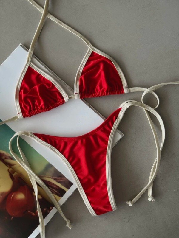 Bikini triángulo forrada, con vivo contratono, breteles para atar a medida en cuello y espalda 😍 Con vivos contratono!
