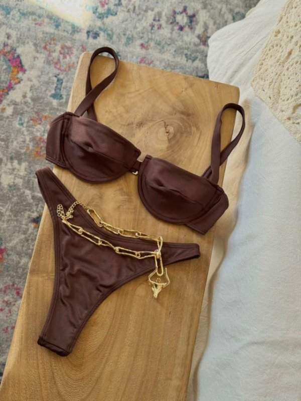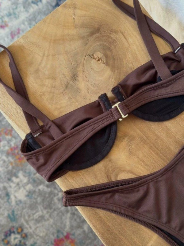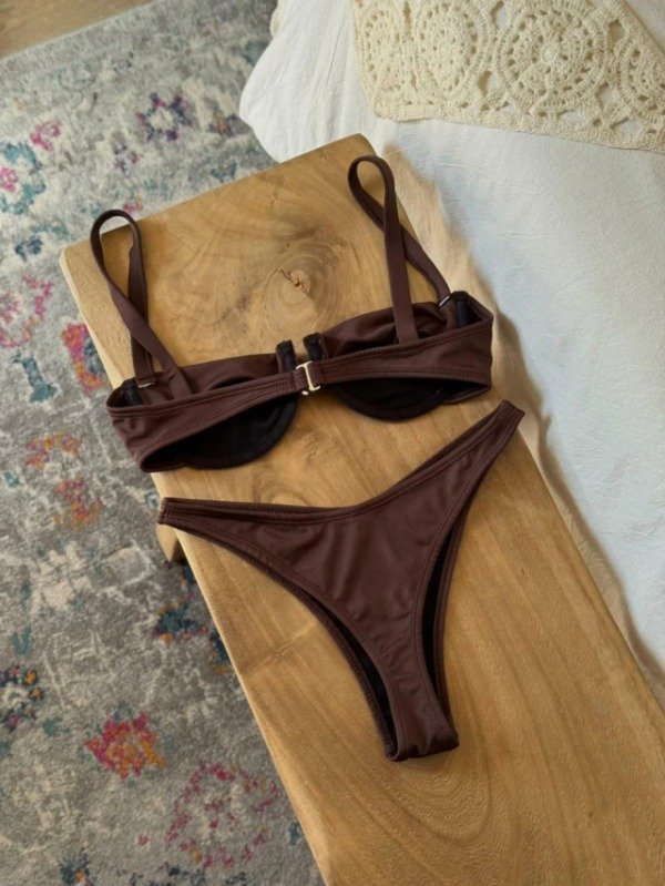 Bikini con aro , forrada , breteles fijos a la espalda y prende con broche metálico. Sostiene y levanta a la perfeccion.