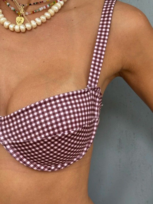 Bikini con aro , forrada , breteles fijos a la espalda y prende con broche metálico. Sostiene y levanta a la perfeccion.